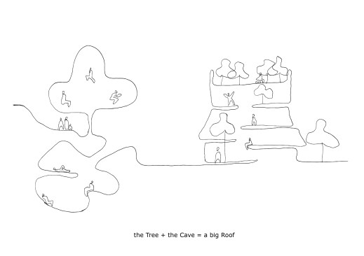 Architecture can be, in a sense, analogous to a Tree (banyan tree, bodhi tree) with its branches and leaves that intertwine and spread out, forming various layers for use; It can also be metarphorically meant spatial levels offering miscellaneous chambers at different heights in a Cave, as regards prehistoric men being accommodated.