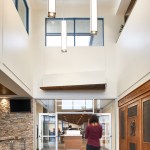 The design process started with the food menu and the concept of nurturing the body. The servery was designed around creating healthy food options that would result in healthier minds and holistic health. The result of this process was a truly inspiring community space that provides healthier menu options, more access to views and natural light, comfortable and flexible seating, and a more opening environment.