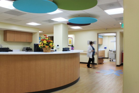 The project commissioned by WVUH Berkeley created a new Neonatal Intensive Care Unit (NICU) through the renovation of existing hospital space. The NICU design placed an emphasis on creating a positive environment in the new unit. The design features bright colors and patterns on the floors, walls, and ceilings. A display of flowers, plants, and butterflies are cut into floor patterns and applied to walls and sidelights. Colorful clouds hang over the central nurse station.