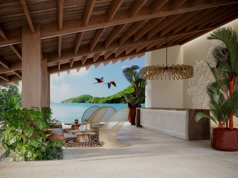 Some other elements incorporated in the design had nature as a reference, for example the beautiful pendants in the spa were inspired by the red scarlet macaw feathers, the lobby has a relief of the Guanacaste tree, which is a national symbol in Costa Rica. Located in Gulf of Papagayo, this luxurious hotel is explicitly focus on wellness and relaxation, offering gorgeous views of the Pacific Ocean