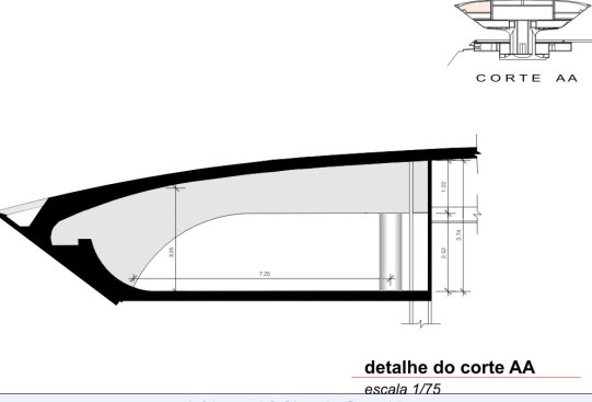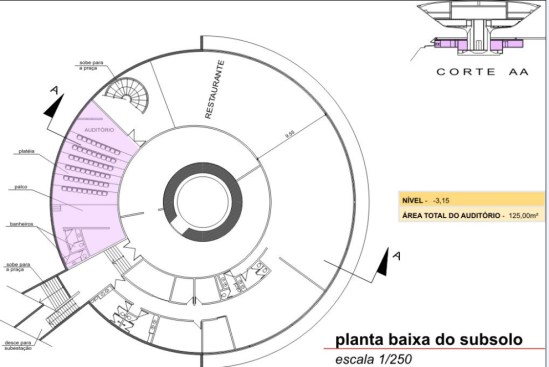 Going down to the basement, visitors can find an auditorium for 60 spectators and the area planned for the restaurant, where a thin torn window horizontally along the facade provides a glimpse of the beauty of Guanabara Bay. Plus there is the power center with 800 KVA, water pumps, two water reservoirs with 6,000 m³ each.