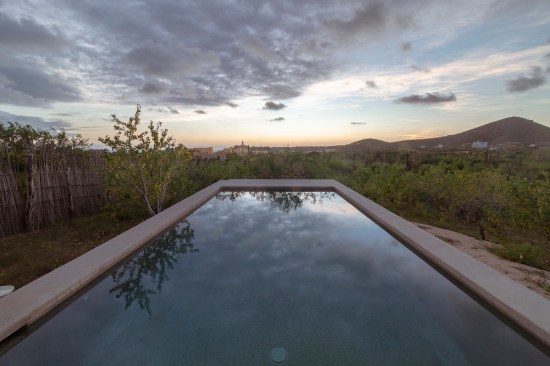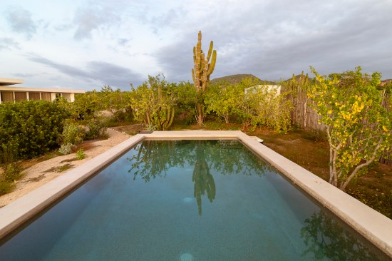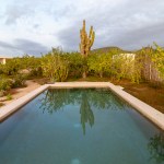 The salt-water pool was intentionally placed in front of two tall cardon cactus on the property. The history behind this is that upon first stepping on the land, the owner immediately connected to these two cactus as strong symbolic representations of her mother and father, both who have passed in recent years. The owner wanted to pay respect to them both and because her mother and father loved the ocean and water so much, she thought it would be a heartfelt and appropriate tribute to have their spirit, and these two cactus, always near a body of water.