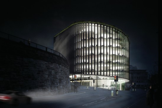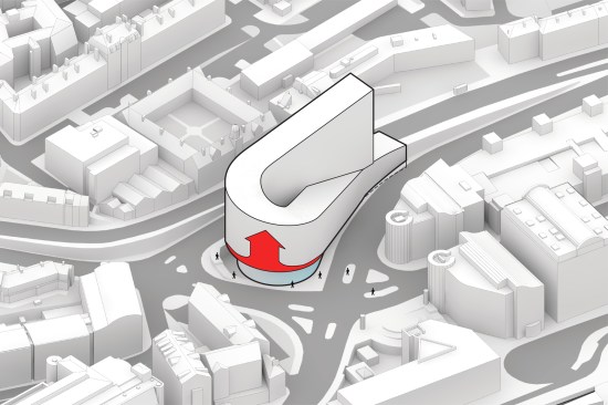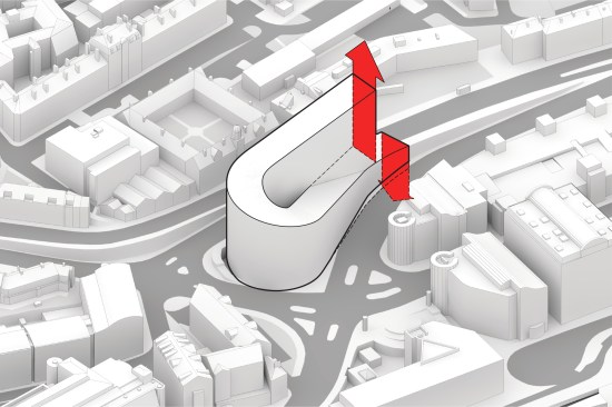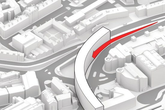 Stereo No. 1 Newcastle is located on a unique site bordered on all sides by major roadways. It lies just off the Quayside in a prominent position between the Tyne and Millennium Bridges and just across from Foster’s Sage Gateshead Arts Centre. The building’s massing is born from the site which follows the existing curve of the road and wraps to create a slender 13m ribbon-like office space that reflects the dynamic quality of its surroundings. The rooftop acts as a fifth facade and winds down to create a string of linear garden terraces that are connected by a stair at the western edge serving as a secondary means of fire egress and a linear park.