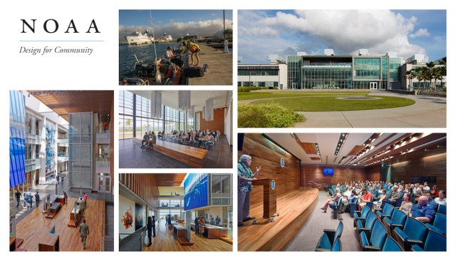 Located on a national historic landmark site on Oahu’s Ford Island, the National Oceanic and Atmospheric Administration’sInouye Regional Center features the adaptive reuse of two World War II-era airplane hangars linked by a new steel and glass building. The hangars inspired beautifully simple design solutions for how the center uses air, water and light. The LEED Gold complex accommodates 800 people in a research and office facility that integrates NOAA’s mission of “science, service and stewardship” with Hawaii’s cultural traditions and ecology.The interior environment, which is based on principles of campus design, creates a central gathering place.