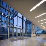 Faculty offices are located on the east side of the building, facing the science complex courtyard. The transparent curtain wall creates an open visual connection between the interior and exterior which enhances the work environment.