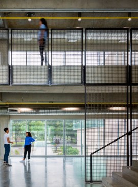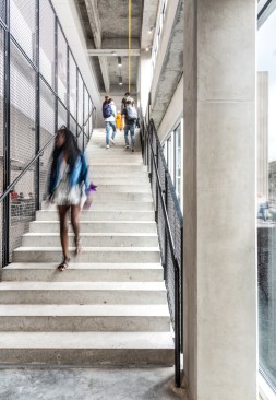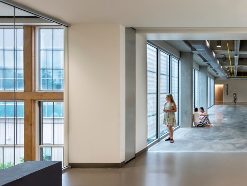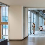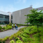 To achieve such a vision, the district and design team set goals of LEED Platinum and Net Zero Energy + Water. The design employs natural daylight in regularly occupied spaces and maximize solar harvesting via an expansive rooftop PV array system. The team identified other goals to strengthen the surrounding community through sustainable measures, including: repairing local hydrology through thoughtful development and regenerative landscape and stormwater harvesting and reuse practices; integrating groundwater with the building mechanical energy system; and creating campus public spaces that can complement and enliven adjacent properties.