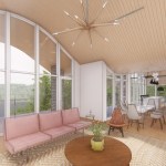 Having emigrated from Spain and Italy, the family gravitated to a design that celebrates traditional Mediterranean forms. Minimalist interiors with open floor plans connect to the outdoors and draw inspiration from coastal villas of Capri and Mallorca, while the roof and fenestration interpret a traditional arch form that echoes the rolling hillside along the north shore.