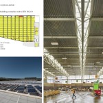 Mahlum broke the complex into three distinct buildings: a two-story warehouse-like structure for waste processing, a two-story administrative building attached to the east side of the main structure, and a 10,000-square-foot recycling building bermed into the east end of the property. Trash arrives from the south side of the building via trucks that enter and exit from beneath the administration building along the east side of the main structure. The 63,246-square-foot “tipping” floor, where trash is spilled out and sorted, features 200-foot-long clear-span trusses, a translucent clerestory, and skylights that provide the workspace with 97% natural daylight. An added benefit, Schopf says, is the fact that “odor and noise can be much better [controlled] by having it contained in a warehouse.” Following sorting and processing, the trash is transferred through openings in the floor into waste haulers on the lower level.