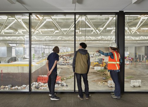 Much of the discovery process centered on how to make the new facility sustainable and how to make it a good neighbor. “The old station was just a dump,” Mahlum Architects design partner Anne Schopf, FAIA, says. The trash came into an open-air concrete structure and was transferred to trains to be hauled away. “We reengineered the process,” she says. It’s part of Seattle’s ambitious initiative to divert 75% of the city’s waste stream to recycling or composting by 2022.