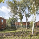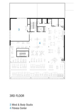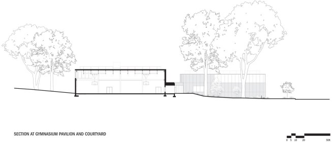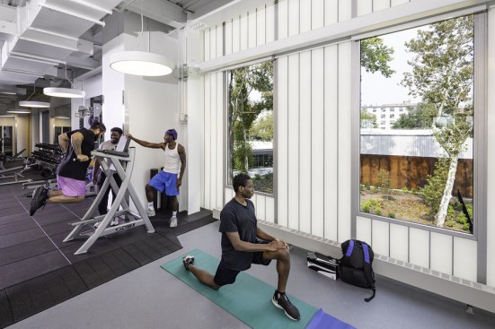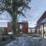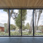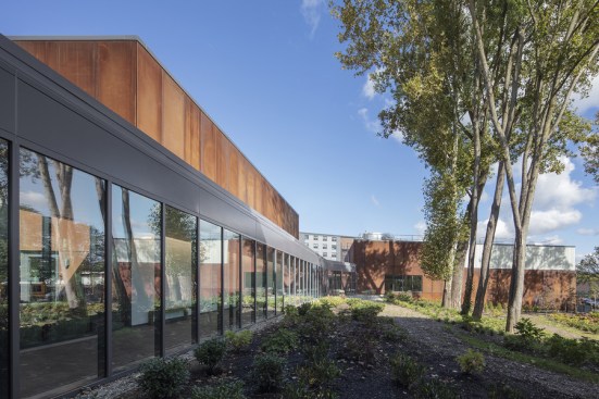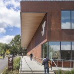 Located on a previously wooded 3-acre site, the building features three pavilions that preserve mature trees and respect the natural topography. This layout promotes openness and transparency, creating a welcoming atmosphere. The pavilions are connected by a glass corridor, enhancing visibility and incorporating natural light, reflecting the YMCA’s core values of openness and inclusivity.