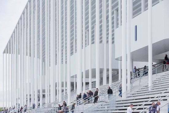 stadium. The fusion of stairs and columns forms a gesture of openness and