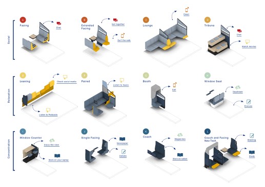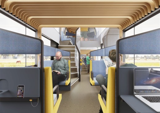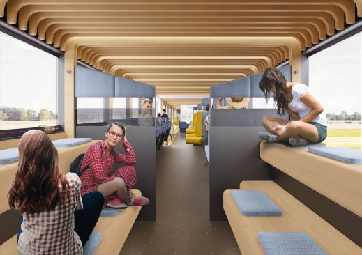 Every year, 373 million travellers spend their time in NS trains. In NS’s (the Dutch National Railway Company) future vision for 2025, the train will be more than a means of transport. Travel time will become more attractive and will be part of travellers’ 'own time'. Mecanoo architects and furniture maker Gispen were asked by NS to collaboratively shape this vision. The result is a flexible and modular train interior that enables a wide variety of configurations and facilitates train passengers’ diverse activities. Every traveller and every journey is unique. Mecanoo and Gispen, in cooperation with NS, have mapped train passengers’ activities. Based on this research six activity zones were defined, ranging from open and social to private and concentrated. These activity zones are differentiated by varying arrangements of twelve furniture modules. The modules include both current and new train interior elements and configurations.A dynamic travel landscape is created with various seating, 'stit' (sit-stand or leaning) and standing places where every traveller can find a place that suits them depending on their activity, travel time, group size, luggage and required facilities. The new train interior facilitates a wide range of activities. It is comfortable, accessible and welcoming to everyone. These qualities coincide perfectly with Gispen’s experience in furniture making and with Mecanoo’s experience in the architectural and interior design of museums, libraries, schools and offices. The result is an innovative train concept that makes travelling a whole new experience. With the flexible twelve-module furniture system, a suitable combination can be made for every type of train for an optimal travel environment. The elements have a completely circular production model. The fabrics are reusable and the modules can be easily disassembled and are interchangeable. The NS thus flexibly accommodates travellers’ needs and is prepared for the sustainable mobility of the future.