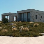 The building’s perimeter wall, made of natural stone, is being utilized pointwise, due to its heat capacity, allowing this way the internal temperature optimization and visually integrating the house to its surroundings.
