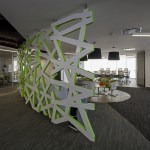 Entering the offices the carpet and the panels play a very discrete role with the playing of different forms similar to the curves of Nutrisa’s primary product, ice cream.