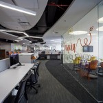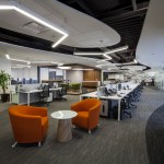 The lighting in the open areas was conceptualized to have the forms of a honeycomb but in a disruptive manner; the transparency of the private spaces was protected in order to permit the greatest amount of natural light.