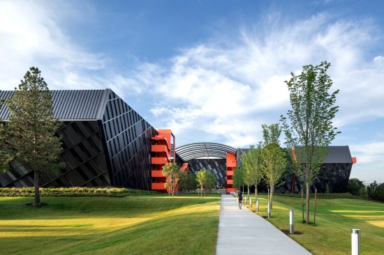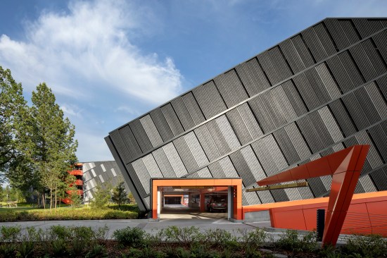 The NYC Garage successfully merges safety, efficiency and the functionality of 1,994 parking spaces for employees and visitors with the strength and spirit of competition and athleticism. As a dynamic facility complementing the character of the campus fabric, the garage redefines how people think about parking structures.