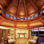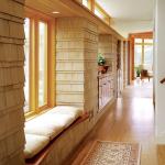 “Most of us would be afraid to bring shingles into a house,” one judge noted, “because of the very difficulty of getting things to line up.” Here, the exterior shingles march straight through the house, their alternating bands of wide and narrow exposure running true from outside to inside. Horizontal elements that must line up perfectly with a shingle course—and do—are seemingly everywhere: countertops, window seats, door and window heads, even the custom HVAC registers. Everything lands effortlessly and exactly where it belongs. That precision fit between design and execution is evident throughout the house, as in the exposed joinery of the cupola framing, which is reflected in the pattern of the inlaid wood floor below. As one judge noted, “The entire interior is finished at a cabinetmaker’s level of detail.”