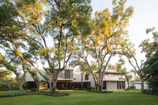 Miami-based architecture and design firm, Touzet Studio, known for mindful architecture and interiors inspired by nature, culture and technology, designed a 12,500+ square foot home set inside a 45-oak tree landscape.