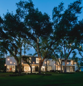 The architects’ goal was to design the house to not be a figure in the landscape, but an observer of the landscape, while respecting the existing oak grove and mature vegetation. Just one oak tree was moved and one rotated in place.
