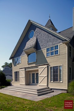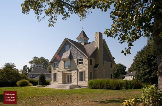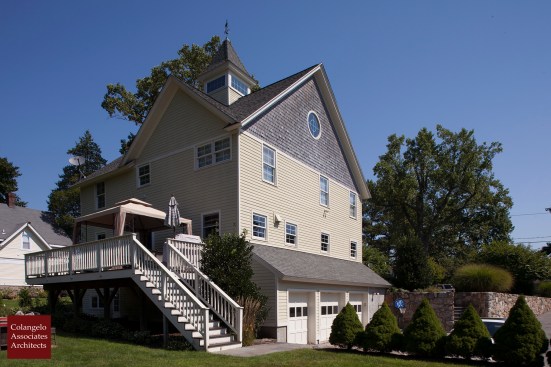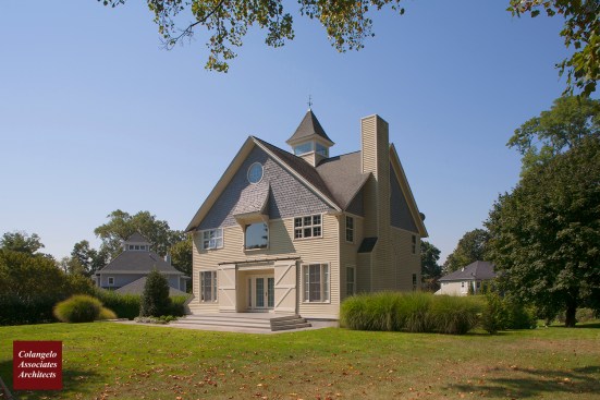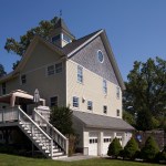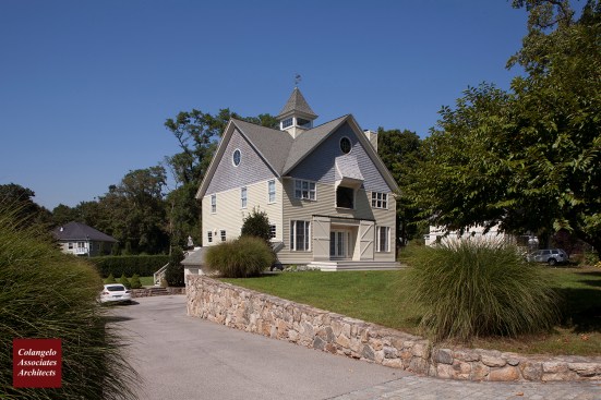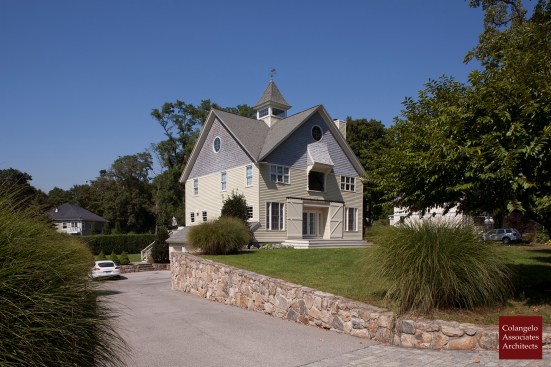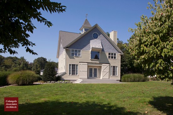 This barn, was re-located to an adjacent lot and totally renovated. The dramatic entry is three stories high.