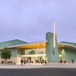 – Main spaces in the building employ displacement ventilation, taking advantage of the single tiered seating and high volume in the theaters. This system will connect both to the central plant and the passive solar.