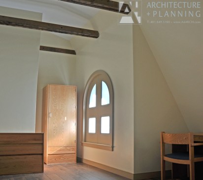 For fifty years the Ochre Lodge Carriage House, on the campus of Salve Regina University, had been used as an unheated storage garage. Set amidst 19th century mansions and just a stone’s throw away from the magnificent Breakers Estate, the exterior of the building deteriorated over the decades behind its boarded up windows. In 2010, the architects were engaged to convert the building to much needed dormitory space for the University. Using advanced Building Information Modeling (BIM) technology, the firm set out to carefully document the existing structure and turn it to productive use.