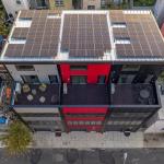 3 artist-designed, contemporary townhomes constructed in reinforced concrete and steel. Efficiency, sustainability & structural integrity form the foundation to the thoughtful design, beautiful materials & custom details throughout. Foundation to roof line 8-inch concrete party walls and 6-inch polished floors. All-electric home is designed to maximize the 7.37kW grid-tied, roof-mounted, PV solar panel system on a standing seam steel roof. High-efficiency, in-floor, hydronic radiant heating system with separate zones for each floor. Spray-foam insulation (closed and open cell). Two hi-SEER LG split systems with indoor handlers in each room. One-car garage with 50amp level 2 electric car charger. Four bedrooms (1st floor, 3rd floor and 4th-master), 3 full baths with wall-hung Toto Aquia toilets, porcelain sinks, Grohe chrome fixtures and colourful handmade tiles from Spain. Spacious open plan 2nd floor with loft-style space for living, dining and gourmet cooking. An abundance of natural light from wall-to-wall Low-E aluminum-clad solid wood casement windows on the northern and southern exposure. Striking modern kitchen features stainless steel countertops and cabinetry inset w/solid, native PA black walnut. Stainless steel, energy-efficient appliances include an LG induction range. Pebble design laser-cut metal staircase with solid hickory treads and curly maple balustrades and handrails. Fourth floor master suite, has black walnut ceiling panels, a large walk-in closet with custom storage & en-suite bath with a luxurious fully-tiled shower with rain head and frameless sliding glass doors. Roof deck features one-of-a-kind views of the Center City Philadelphia skyline. Finished basement is fully heated, insulated & waterproofed to provide another large, open living space for a family room, den, office or playroom, with a separate utility/storage room. Green backyard with corrugated metal fencing and black locust planters. This stunning home is on a quiet, tree-lined, urban street next door to a 19th c bakery & carriage house renovated into artist studios and live-work space.
