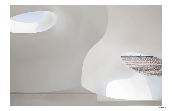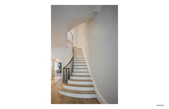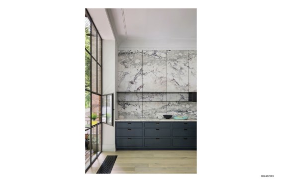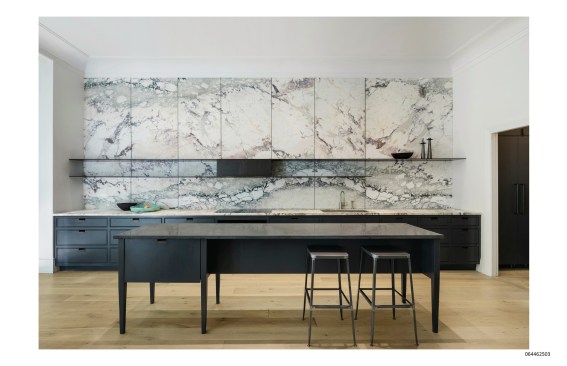 The architects note that the project’s development used both digital tools and traditional handcrafting methods: The oculi were conceived using 3D computer modeling, but ultimately realized through hands-on collaboration with plasterers who employed age-old material techniques. A similar process incorporating 21st-century visualization with traditional craft was used to create an expressive stone wall in the kitchen that artfully exploits the material’s natural variation.