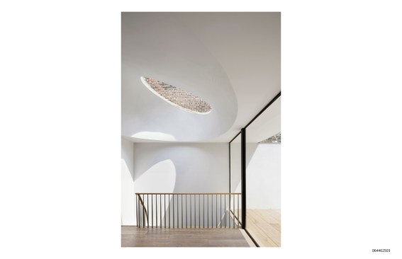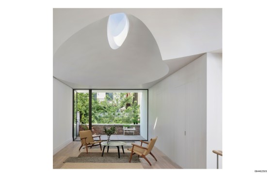 Dubbed Oculi House for the most memorable of the interventions by Brooklyn, N.Y.–based O’Neill Rose Architects, this transformation of a 3,000-square-foot brownstone spreads abundant natural light through four floors within the narrow constraints of a common New York City housing type. The architects drew on Isamu Noguchi’s forms for inspiration when developing two intersecting elliptical oculi for the ceiling of the fourth-floor lounge space. Positioned above the townhouse’s central stair, the two skylights drive the renovation’s daylighting strategy.