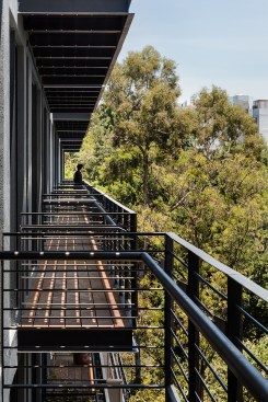 ODP is a residential complex located in the south west area of Mexico City, in a plot with an L shape and natural slope, whose inclination allows to build above and below the street level.
