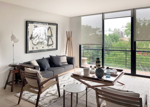 The development has 64 units with different typologies; one, two and three bedrooms, and several shared amenities such as gardens, gym, multipurpose room, swimming pool and a natural terrain at the back of the plot.