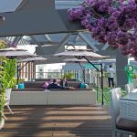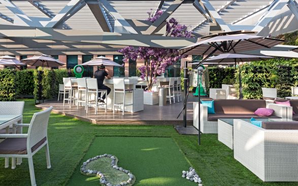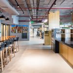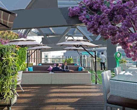 This textural healing is not limited to inside the office, the same language trickles in the outdoor section as well where the terrace sits in the embrace of plant fitted walls on all sides and a large purple tree as the signature piece. Charging points accompany all seating areas, including the bar. The use of greens, self-shading devices and mist cooling fans create a conducive microclimate on the terrace, thereby allowing it to be used throughout the year.