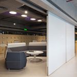 The work paradigm of the future is truly reflected in this constantly evolving and reconfigurable office. It represents a collaborative, solution-oriented approach that aims to promote engagement for enhanced deliberation and discourse. Spaces such as hive for work desks and jump spaces allow for mobile workstations, meetings, conferences, training, and workshops in almost all areas. These spaces have been designed to boost performance and can be reconfigured in a matter of minutes by the end-user themselves. Furthermore, they can be modified into one linear hall to accommodate more people or be sliced off into different parts with sliding doors based on the individual’s or the team’s needs. Technology is also built into the furniture and walls, including screens and digital whiteboards that connect seamlessly. The dynamic graphic signage system visible through the office forms the very ethos of this open, ergonomic and eclectic office. The multiplicity and multifunctional nature of the work format further results in space optimisation by over 20%.