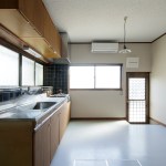 At first, the wall used to divide the kitchen and the generous Japanese-style room was removed, in favour of an attached cooking and living area. At the same time, removing the sliding doors increased the visual interaction and avoided the sense of separation that enclosed small chambers could generate.