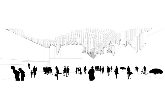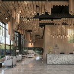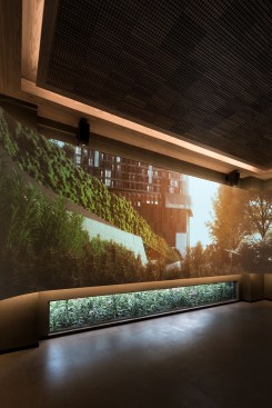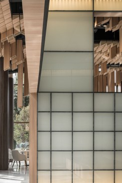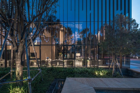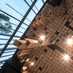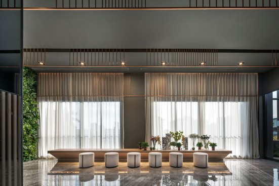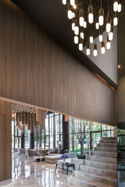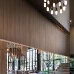 Oka Haus sales gallery situates in the prime location on Rama 4 road in Bangkok downtown as same as the Oka Haus condominium, a project by Sansiri PCL. A cape like interior space, decorated with almost 3,000 pieces of hinging wooden box to shape the internal volume and to impress the guests with excitement. They installed on metal grid system at 5 meters above floor level.
