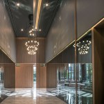 It is designer’s intension to give journey experience to the guests when visit the sales gallery and lead them through the space from the lobby lounge to the projection room, go up to the second floor to visit 3 show flats and the come down to see the condominium model to complete the journey. The model room inside the lobby lounge with enclose partitions that allow the guest to see the model only when they finish the tour but it gives and open view to the outside garden. One wall equipped with LED screen of 6 meters long to provide project information to the guests.
