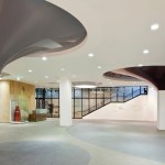 The iconic feature of the project is its geometrically superimposed layers, which deform a simple boxy building and give it a unique appearance from the inside space as well as from the city around, by an animated series of expansion and compression. This repetition of exposed concrete frames towards the sky generates various voids in-between the frames which respond to the movement and to changes in the surrounding cityscape.