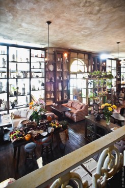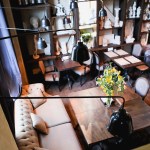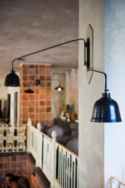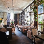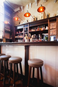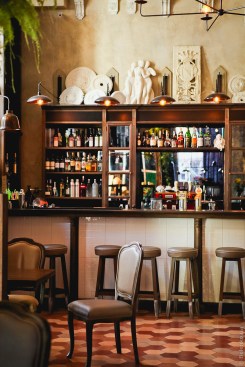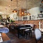 The restaurant “Old Boulevard” is situated on the ground floor of one of the buildings in the central boulevard of Batumi. Its dining hall has two levels, a lower one with large windows and high ceilings, and a mezzanine that is more private and family space. An iron vestibule was installed to divide the entrance from the main hall.