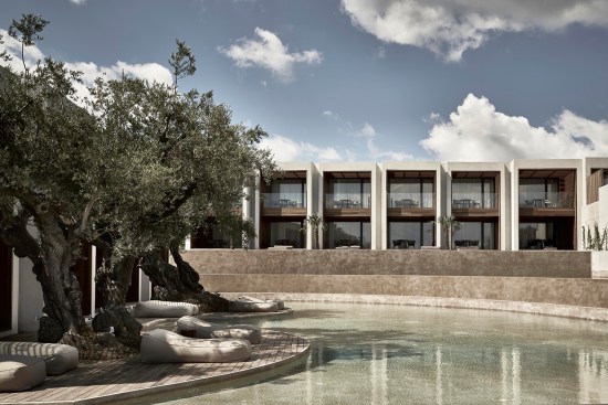OLEA ALL SUITE HOTEL is situated on the island of Zakynthos. Perched organically on an evergreen hill in Tsilivi, sheltered from the winds and merging with the emerald colors of the lush natural landscape, the Olea All Suite Hotel is a contempo-rary, peaceful retreat; a design-led sanctuary that taps into the ever-present element of water.