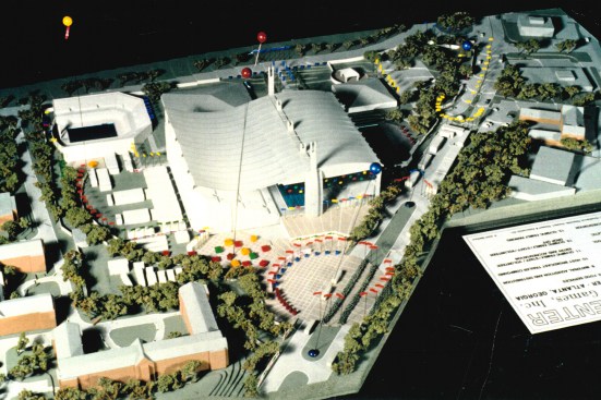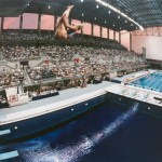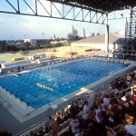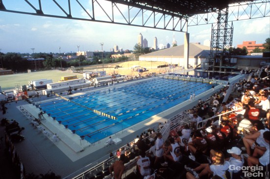 During the planning process, the Atlanta Committee for the Olympic Games designated Georgia Tech as host to the Olympic Village and several events. The university strongly advocated for ACOG to award construction and design contracts to people of color, propelling the local firm of Stanley Love-Stanley into position to secure the Aquatic Center. Located adjacent to the 1977 Student Athletic Center, the Aquatic Center was an outdoor stadium with capacity for 14,900 spectators. The architects incorporated elements—including variable speed recirculation, a moveable floor, wide gutters, and two bulkheads—to give swimmers a competitive edge in the pool, which remains one of the fastest in the world.