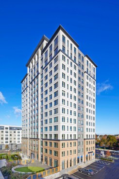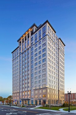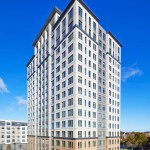 One Chestnut Place, the city’s tallest tower, is a new 156,000 gross square foot high-rise luxury apartment building offering views of downtown Boston and Quincy Bay. The 15-story cast-in-place concrete mixed-use infill development includes 140 market rate units comprised of one- and two-bedrooms and 4,000 square feet of ground floor retail. The majority of the units are organized around the south and north facades; south-facing units utilize solar incidence while north-facing units have vistas to the water.