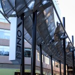 The 20-by-125 foot shade structure, formed by stainless steel wire mesh, provides a beautiful and comfortable place for visitors to ONE City Plaza to relax. Banker Wire S-12 has a low percent open area, which means it can provide shade without blocking light out entirely. By day, it shields guests from the potentially harsh Southern sun, allowing them to dine, lounge and stroll in comfort. By night, small LED lights mounted on the shade structure’s frame illuminate the tables and walkway below. The woven wire mesh filters and reflects the light, giving the plaza a soft glow.