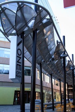 “We worked directly with Banker Wire while detailing this design,” says Todd Mead, Principal with Civitas, designer of ONE City Plaza. “They sent samples to us and to the lighting designer. We tested them for their ability to provide shade, and the lighting designer ensured that the light fixtures and mesh worked together correctly.”