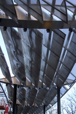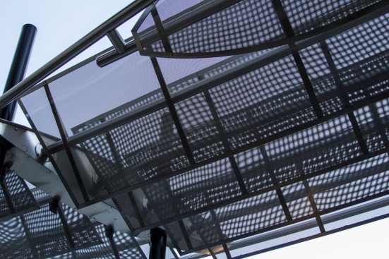 R.F. Knox Company, Inc., a fabricator based in Smyrna, G.A., executed Civitas’ vision by surrounding the woven wire mesh with U-edge frames. The U-edge provides the strength needed to form the structure, without distracting from the woven wire mesh’s aesthetic. The entire structure is mounted on columns and surrounded by greenery and seating.