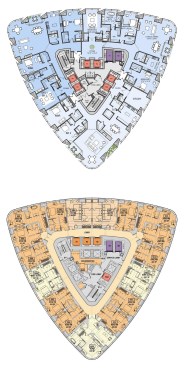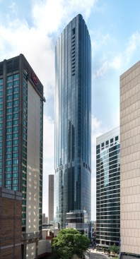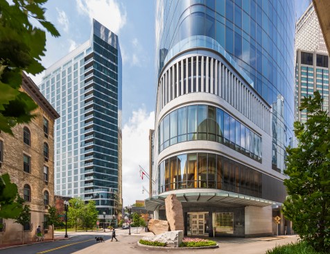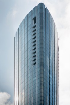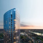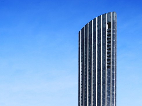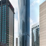 The exterior wall of the residential portion of the tower is shaped by incisions on the surface, offering views in two directions from every room and allowing for operable sashes—a rarity in tall buildings. The incisions give the building a distinctive personality both inside and out, while distinguishing the tower’s two different uses: 174 residential condominiums on the top forty floors above, and a 215-room hotel on the 20 floors below.