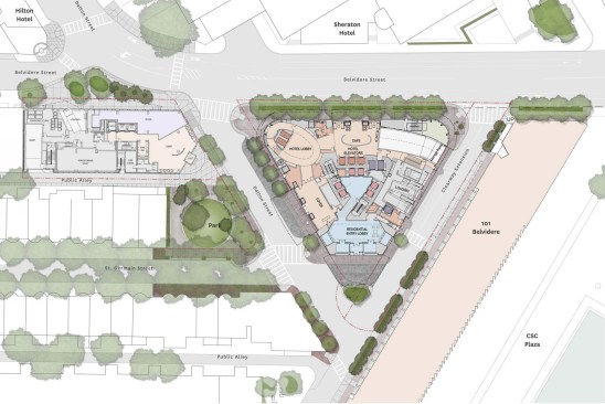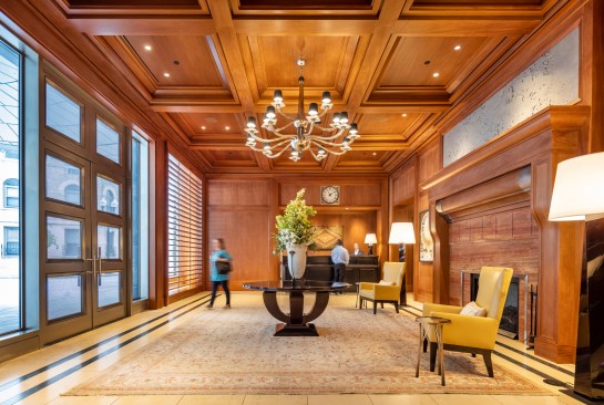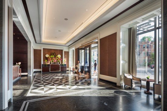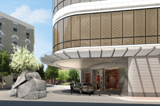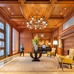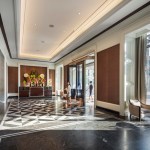 COMPONENTS: 706,000 ft2 / 66,000 m2 gross area; luxury hotel with dedicated hotel lobby, retail, café, restaurant, ballrooms, meeting rooms, gym, and spa; residential condominiums with fireplaces, balconies on upper floors, private lobby with porte-cochère, commons room with accommodations for private dining, theater, kids’ playroom, golf simulator, pet grooming