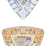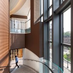 A second challenge—the site’s unusual equilateral triangular shape—is a product of the nineteenth-century railway lines and former railyards, which dictated the street plan, and Massachusetts Avenue, which edges the array of Back Bay blocks. To mitigate the aggressively long sides and sharp corners of the triangular site, the plan of the tower has been shaped as a soft triangle, with three curved sides and smaller-radiused curves at the corners.