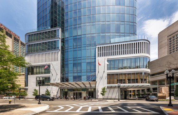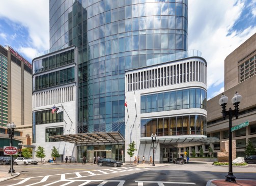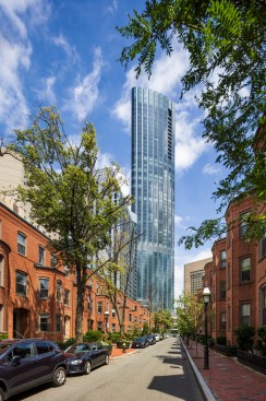 One Dalton rises at the juncture of two Boston neighborhoods: the Back Bay, with its tree-lined streets of nineteenth-century townhouses, and the western end of the city’s High Spine, comprising the largest-scale complex in Boston, with the 52-story Prudential Center at its heart.