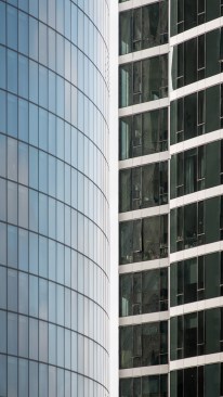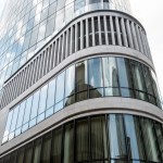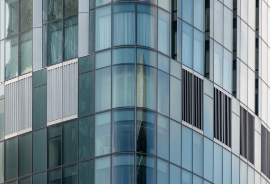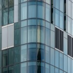 The glass between the incisions extends beyond the right angle that forms the operable sash, protecting the sash from precipitation and Boston’s high winds. The glass on the surface of the tower is gray-tinted, offering very low reflectivity as well as low UV and solar-radiation transmittance.