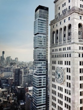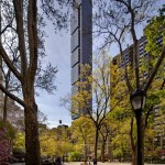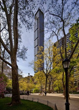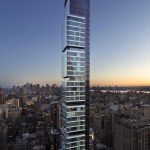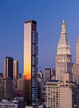 An iconic residential tower uniquely sited on the Manhattan grid, One Madison Park optimizes the urban design opportunity presented by its location. This sculptural building consists of a main shaft of earth-tone bronze glass that references the masonry of the buildings in the surrounding area and that is articulated by a series of asymmetrical, cantilevered white-glass cubes. The tower anchors the base of Madison Avenue and historic Madison Park while engaging in an architectural dialogue with neighboring landmarks and enlivening the skyline. The tower’s dramatic slenderness ratio of 12:1 is facilitated by an innovative structural system that incorporates rooftop liquid mass dampers and shear walls embedded in the building’s core, and affords loft-like open planning and striking, unobstructed views from all homes.